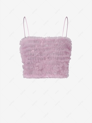 Zaful If ruffles and mesh are what you're after, look no further than this charming cami top. Whether you wear it with easy denim cutoffs or just a simple mini skirt, it'll help you achieve your best off-duty look ever. Style: Cute Shirt Length: Crop Top Collar: Spaghetti Strap Material: Elastane, P
