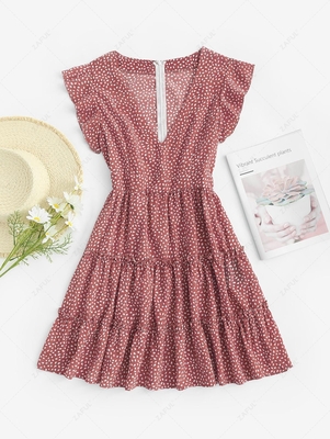 Zaful Style: Cute Occasion: Daily, Vacation Dress Type: Tiered Dress Silhouette: A-Line Collar-line: V-Collar Sleeves Length: Short Sleeves Dresses Length: Mini