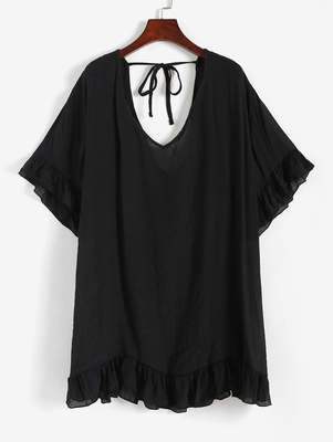 Zaful Cover-Up Type: Dress Gender: For Women Collar-line: V Collar Sleeves Length: Short Sleeves Material: Cotton Pattern Type: Solid Decoration: Ruffles, Tie Material Stretch: No Stretch Weight: 0.1700kg Package: 1 x Dress