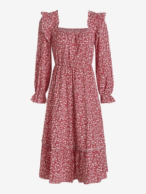 Ruffles Tiny Floral Long Sleeve Midi Dress L Red