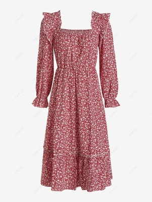 Zaful Style: Brief, Cute Occasion: Daily, Vacation Dress Type: Milkmaid Dress Silhouette: A-Line Collar-line: Square Collar Sleeves Length: Long Sleeves Dresses Length: Midi