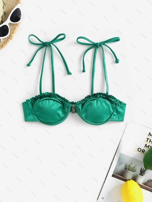 Zaful Style: Sexy Gender: For Women Swimwear Type: Bikini Top Material: Polyester, Spandex Material Stretch: Slight Stretch Bra Style: Padded Chest Pad: Removable Pads Support Type: Underwire Collar-line: Spaghetti Straps Pattern Type: Solid Decoration: Frilled, Tie Weight: 0.1700kg Package: 1 x Top