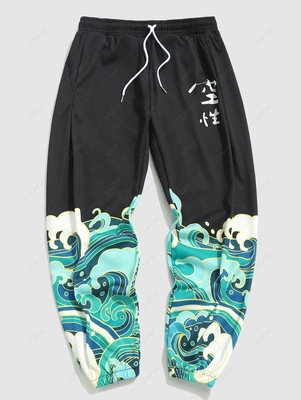 Zaful The pants offer a new & fashionable look to this classic masculine garment with Chinese characters & sea waves print. This versatile piece can be worn with a modern look or a smart sportswear outfit. They are also easy to combine with a shirt or a sweatshirt. Pant Style: Sweatpants Style: