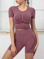 Seamless Ruched Short Sleeve Top And Sport Skinny Shorts Set S Deep