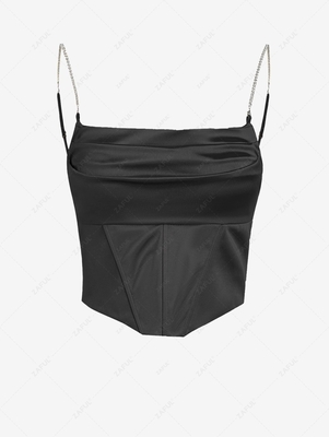 Zaful Add a lustrous note to your outfit of the day (or night) in this sheeny cropped cami, gracefully draped & rendered in a warm hue with supportive boned details & rhinestoned shoulder straps. Style: Sexy Shirt Length: Crop Top Collar: Spaghetti Strap