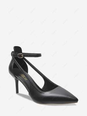 Solid Color Cut Out Ankle Strap Pumps