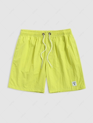 Solid Color Label Design Casual Drawstring Shorts Xl Yellow