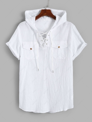 Material: Cotton, Polyester Material Stretch: No Stretch Fit Type: Regular Fit Shirt Length: Regular Sleeves Length: Short Collar: Hooded Pattern Type: Solid Color Decoration: Pockets Season: Spring, Summer Weight: 0.1950kg Package: 1 x Shirt