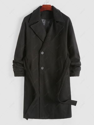 Solid Color Longline Warmth Woolen Coat With Belt Xl Black