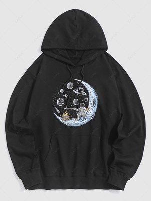 Zaful Clothes Type: Hoodies Style: Casual Occasions: Daily Collar: Hooded Sleeves Length: Full Pattern Type: Astronaut, Moon Decoration: Front Pocket