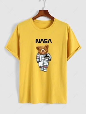 Zaful Style: Funny Material: Cotton Material Stretch: Slight Stretch Fit Type: Regular Fit Shirt Length: Regular Sleeves Length: Short Collar: Round Collar Pattern Type: Astronaut, Bear Season: Summer Weight: 0.1900kg Package: 1 x T-shirt
