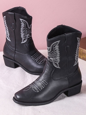 Zaful Gender: For Women Boot Type: Fashion Boots Style: Fashion Occasion: Daily Boot Height: Mid-Calf Toe Shape: Pointed Toe Heel Type: Chunky Heel Closure Type: Slip-On Pattern Type: Others Decoration: Embroidery, Topstitching Outsole Material: Rubber Upper Material: Faux Leather Season: Fall Weigh