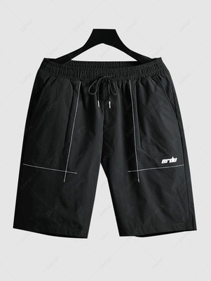 Zaful Type: Shorts Style: Casual Occasions: Daily Length: Knee-Length Material: Polyester Material Stretch: No Stretch Fit Type: Straight Waist Type: Mid Closure Type: Drawstring Front Style: Pleated Pattern Type: Letter Decoration: Adjustable Waist, Pocket With Belt: No Season: Summer Weight: 0.230