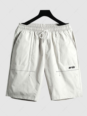 Zaful Type: Shorts Style: Casual Occasions: Daily Length: Knee-Length Material: Polyester Material Stretch: No Stretch Fit Type: Straight Waist Type: Mid Closure Type: Drawstring Front Style: Pleated Pattern Type: Letter Decoration: Adjustable Waist, Pocket With Belt: No Season: Summer Weight: 0.230