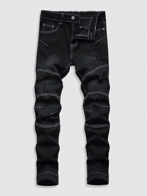 Zaful Pant Style: Ripped Jeans Pant Length: Long Pants Fit Type: Regular Fit Waist Type: Mid Closure Type: Zipper Fly Pattern Type: Solid Color Decoration: Topstitching Wash: Dark