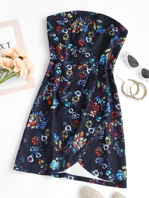 Zaful You'll be ready for your next tropical destination or brunch in this floral shoulder-flaunting minidress designed with a fluttery overlay & a high-rise waist to elongate the figure. Style: Fashion Occasion: Daily, Vacation Dress Type: Bandeau Dress Silhouette: A-Line Collar-line: Strapless S