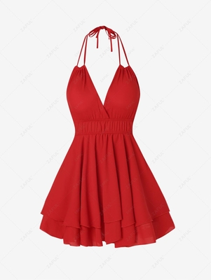 Strappy Halter Backless Layered Mini Dress Xl Red