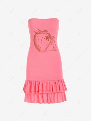 Material: Polyester, Spandex Material Stretch: Slight Stretch Pattern Type: Strawberry Decoration: Flounce Season: Fall, Spring, Summer With Belt: No Weig