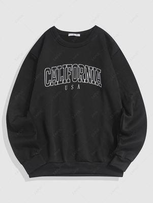 Streetwear California Contrasting Letter Fleece-lined Crewneck Vintage