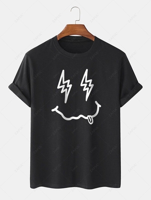 Streetwear Cartoon Face Printed Funny T-shirt S Black
