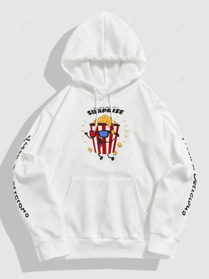Zaful Keep you warm & comfortable in this fleece-lined hoodie when the cold days creep up on us. Cut a relaxed & cozy fit, the hoodie with cartoon popcorn & letter print accentuate the appeal of casual aesthetics to express its own style. Clothes Type: Hoodies Style: Casual Occasions: Daily C