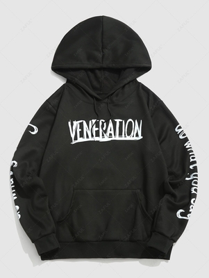 Streetwear Contrasting Letter Print Fleece-lined Hoodie M Black