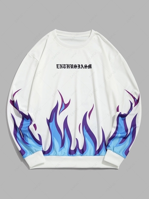 Streetwear Flame Letter Print Crew Neck Sweatshirt Xxl White