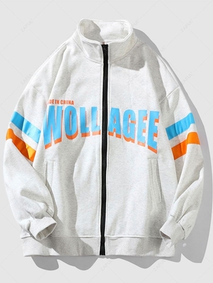 Streetwear Flocking-lined Contrasting Letter Graphic Stripe Zip Jacket