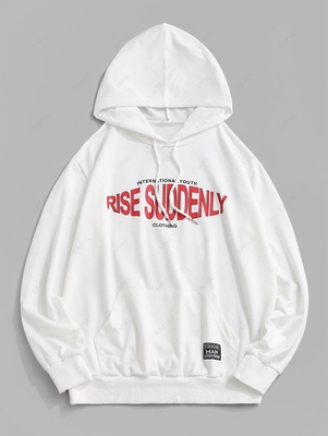 Streetwear Letter Print Applique Detail Kangaroo Pocket Essentials