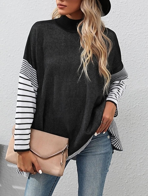 Zaful Type: Pullovers Occasions: Daily Style: Fashion Fit Type: Oversized Length: Long Collar: Mock Collar Sleeve Type: Drop Shoulder Sleeves Length: Long Sleeves