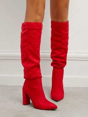 Zaful Gender: For Women Boot Type: Fashion Boots Style: Fashion Occasion: Daily Boot Height: Mid-Calf Toe Shape: Pointed Toe Heel Type: Chunky Heel Closure Type: Slip-On Pattern Type: Solid Color Decoration: Ruched Outsole Material: Rubber Upper Material: Suede Lining Material: PU Season: Fall, Wint