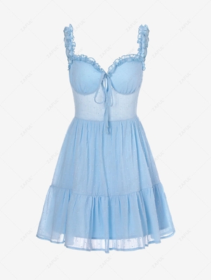 Swiss Dot Frilled Tie Pep Hem Dress S Light Blue