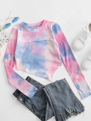 Zaful A stretchy ribbing and the uneven hem add plenty charms to this shapely long sleeve top that's styled with a pretty tie-dye pattern and flattering long sleeves to elevate the eye-catching look. Style: Fashion Shirt Length: Short Collar: Crew Collar Sleeves Length: Full Material: Cotton, Polyes