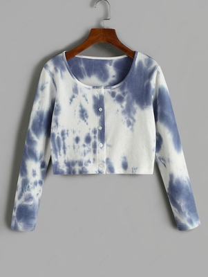 Zaful The chic long-sleeved tee in eye-catching tie dye features a casual scoop collar & a button-up front, in an alluring cropped silhouette. Perfect for everyday wear. Style: Fashion Collar: Scoop Collar Sleeves Length: Full