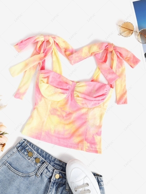 Zaful Cloaked in a trend-ticking tie-dye print, this bustier-style tank top features tied shoulder straps & ruched cupped busts. Pair with denim shorts or skirts for a head-turning look! Style: Sexy Shirt Length: Short Collar: Sweetheart Collar