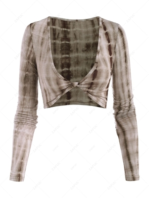 Zaful A low-cut front adds an extra flirt to this slim long-sleeve T-shirt cut in a flattering cropped length with a shapely twist and covered in an impression-making tie-dye patterning. Style: Fashion Occasions: Daily Shirt Length: Crop Top Collar: Plunging Collar Sleeves Length: Long Sleeves Fit