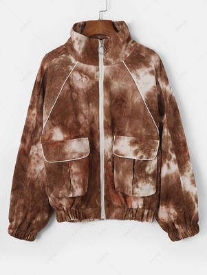 Zaful A sleek zip-up jacket with street-ready style, featuring a contrast-piping design, two edgy cargo pockets, and a muted tie-dye patterning. Go with slouchy jeans and chunky sneakers to complete your outfit. Occasions: Daily Style: Fashion Clothes Type: Jackets Material: Cotton Type: Wide-waist