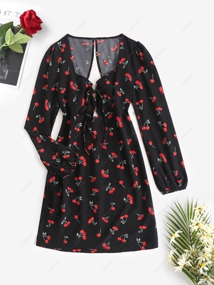 Zaful This lovely mini dress is distinguished by a cute cherry print & a nostalgic sweetheart-collar silhouette, plus flirty touches like a playful tie at the front with a subtle cutout & an alluring open back. Style: Cute Occasion: Daily, Vacation Silhouette: Sheath Collar-line: Sweetheart Coll