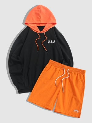 Zaful Type: Hoodie& Shorts Set Style: Casual Occasions: Daily Top Length: Regular Sleeves Length: Full Bottom Length: Shorts Waist Type: Mid Closure Type: Drawstring Pattern Type: Colorblock, Letter Decoration: Embroidery