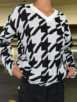 Zaful A cozy & edgy pullover with go-with-anything potential. This v-collar sweater is cut in a slouchy dropped-shoulder silhouette with a sleek houndstooth patterning for a charming piece to pair with anything from simple jeans to crisp skirts. Type: Pullovers Occasions: Daily Style: Fashion Fit