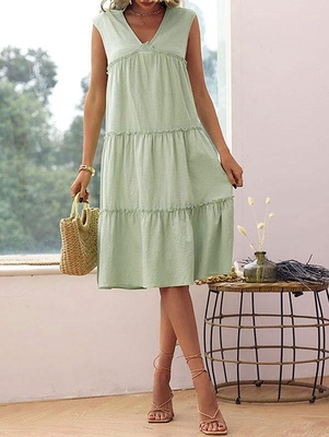 Zaful Style: Brief, Casual Occasion: Daily, Vacation Dress Type: Smock Dress Silhouette: Straight Collar-line: V-Collar Sleeves Length: Sleeveless Dresses Length: Midi