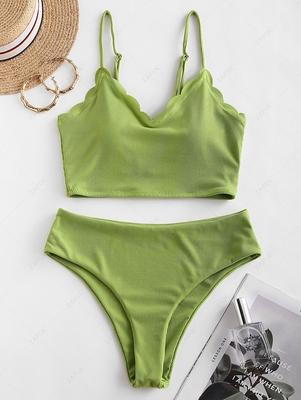 Zaful Get this plain ribbed tankini swimwear for a luxurious summer. It comes with scalloped details to add a sweet vibe, ...