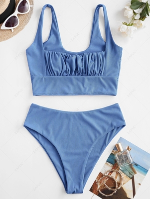 Zaful Cut from a softly ribbed fabric with a seamless finish, for extra comfort, the two-piece set comprises a crop top & high-rise briefs, which both are devoid of detail, bar the ruched cups. Removable foam cups let you customize your support. Style: Fashion Swimwear Type: Tankini Gender: For W ...