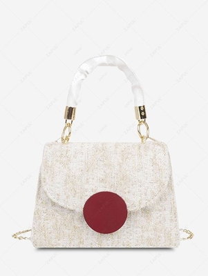 Zaful In a wool finish, this bag is crafted into a tote bag shape with a solid handle & a gold-tone chain strap. The striking red fasten creates an eye-catching effect. Pair it for a sophisticated & ladylike look. Gender: For Women Type: Crossbody bag, Shoulder bag Shape: Square Style: Elegant, F
