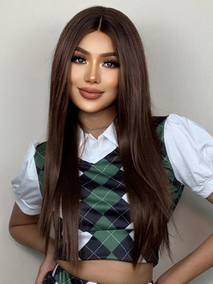 Zaful 13*1 T-type Lace Front Dark Brown College Style Long Silky