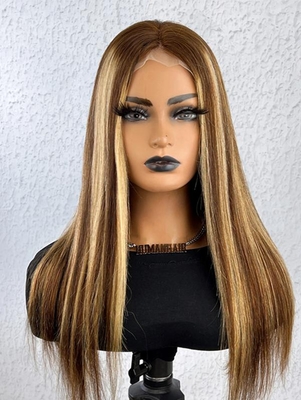 Zaful 13*4 Lace Front 150% Human Hair Brown Mixed Golden Straight Wig