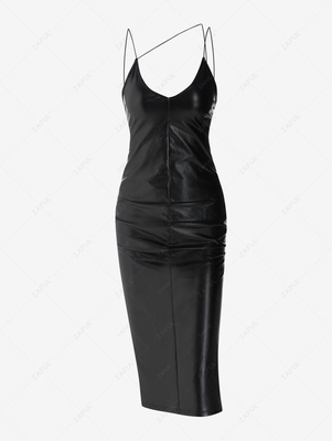 ZAFUL Back Slit Strappy PU Leather Midi Dress M Black
