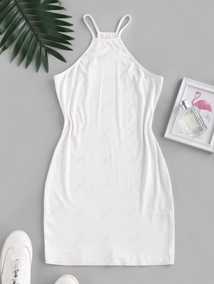 ZAFUL Basic Ribbed Racerback Slinky Dress Xl White