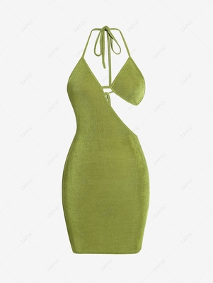 Zaful Style: Sexy Occasion: Club, Night Out Material: Polyester, Polyurethane Silhouette: Bodycon Dresses Length: Mini Collar-line: Halter Sleeves Length: Sleeveless Decoration: Backless, Cut Out Pattern Type: Solid Material Stretch: High Stretch Season: Fall, Spring, Summer With Belt: No Weight: 0.1600