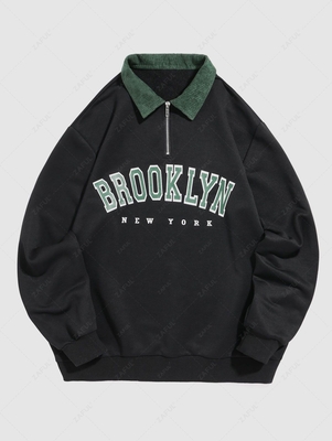 ZAFUL BROOKLYN NEW YORK Half Zip Corduroy Sweatshirt L Black